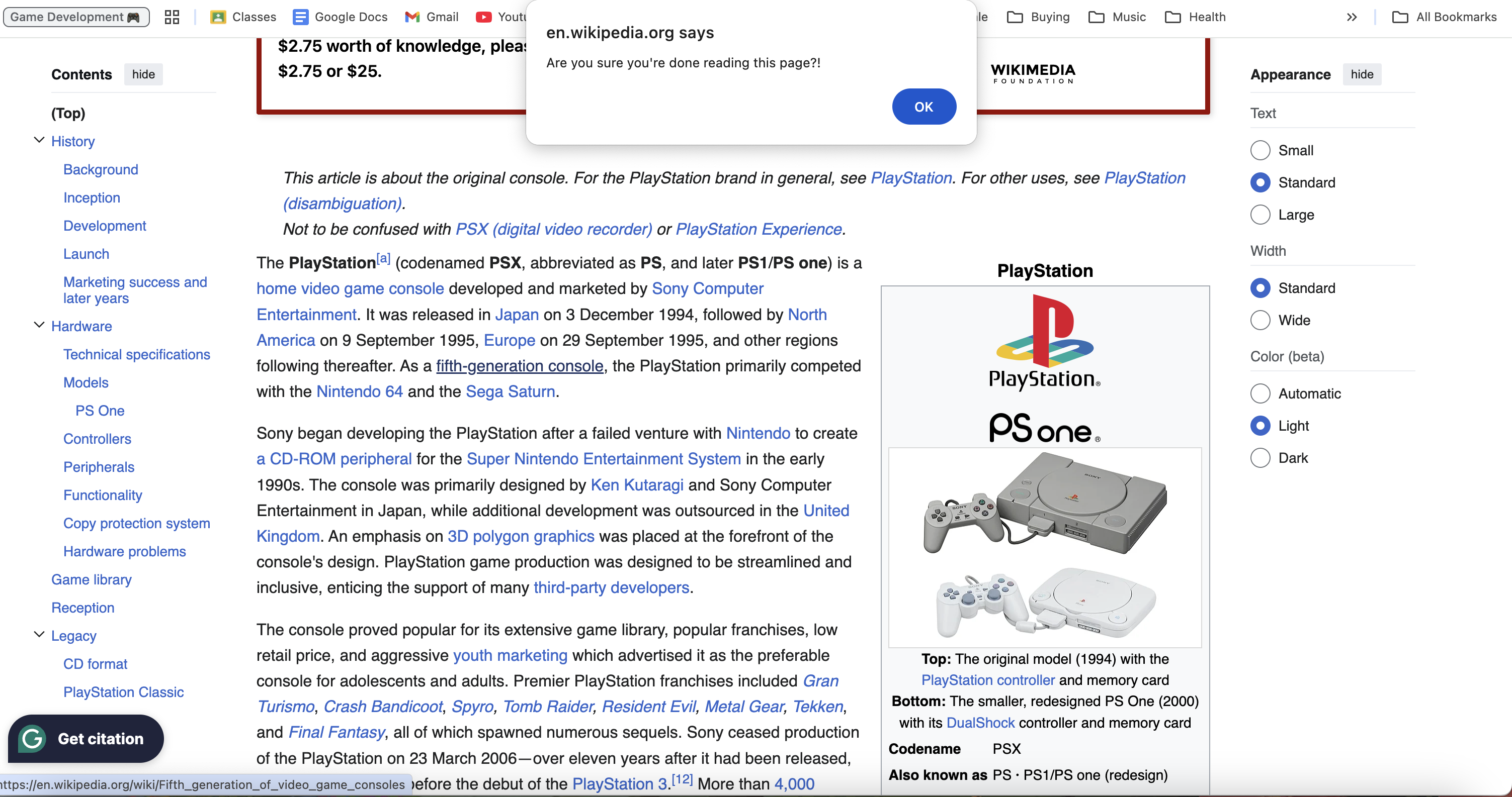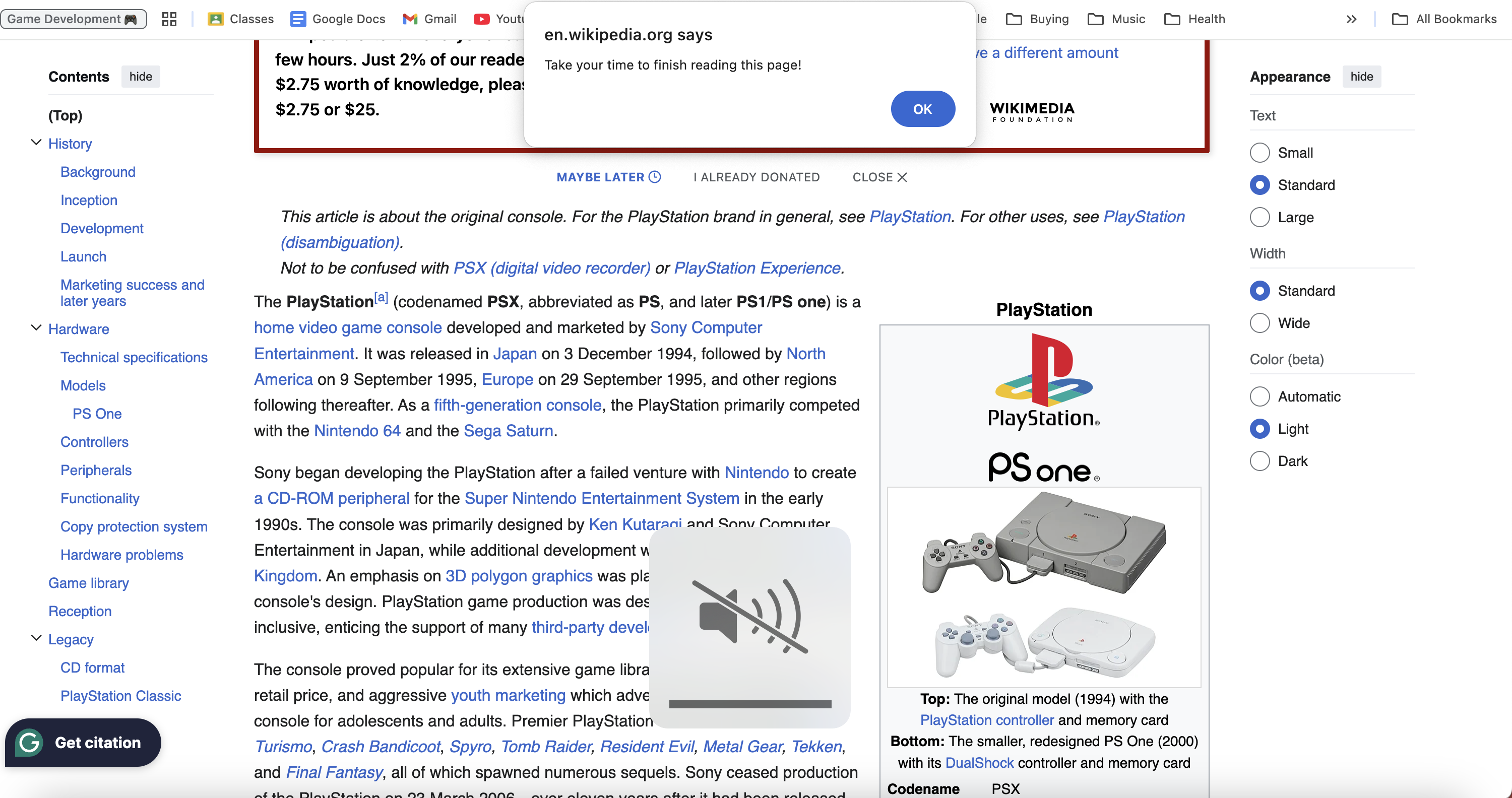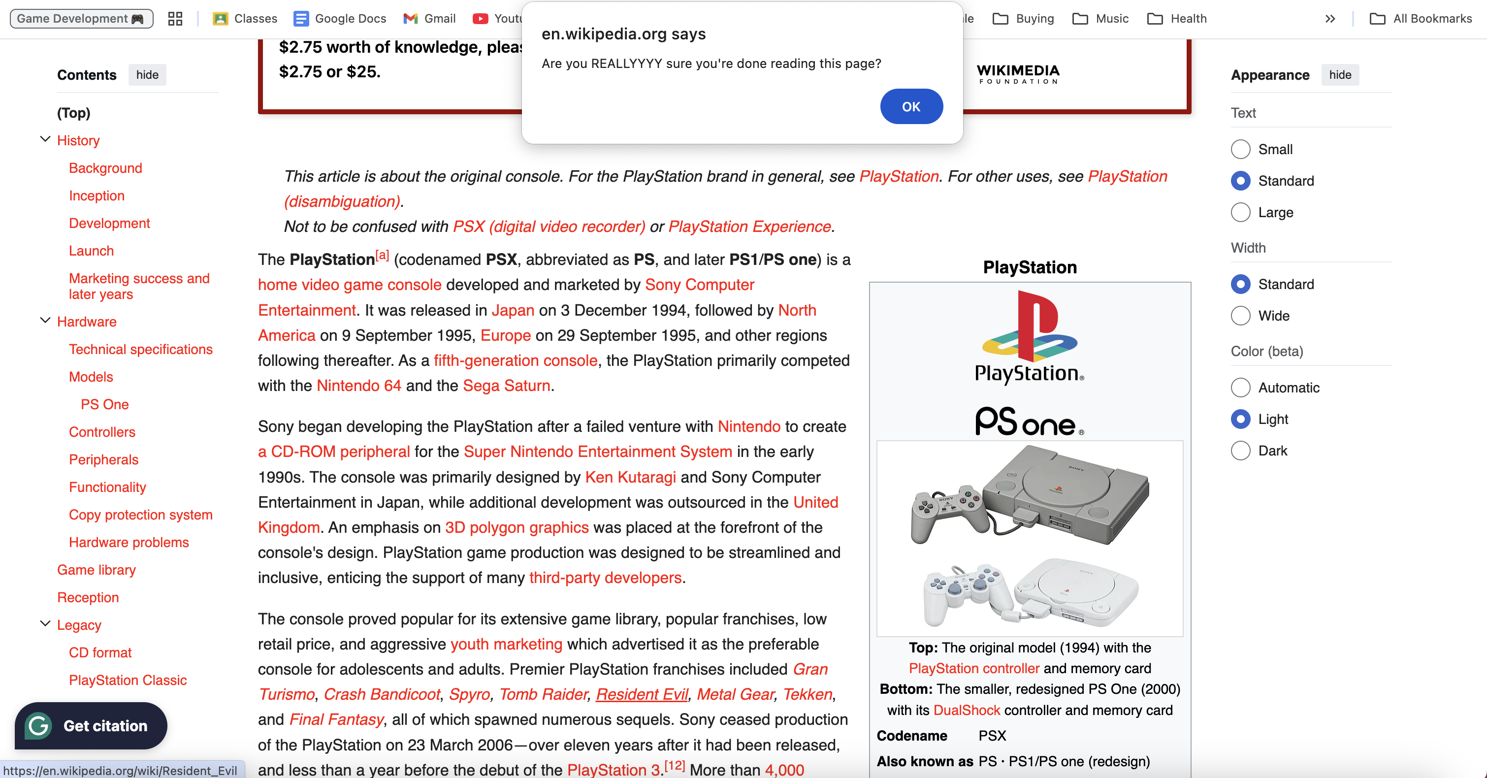 To slow down the user's reading, we made a simple bookmarklet that asks the reader to consider whether going onto the next page, so they take